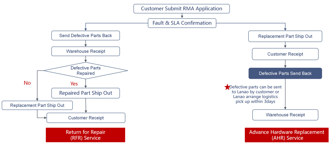 4 | Customer ships defective unit to nearest Lanaotek service center (at customer's cost) | Customer | Within 7 days of RMA approval |