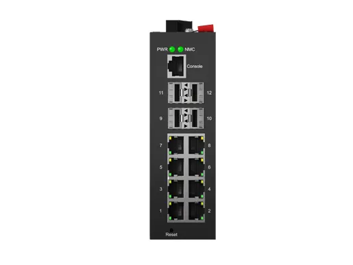 IDSL3LR-04S08G-Z7 is an Industrial Ethernet Managed Switch, with 8x10/100/1000Mbps auto-negotiation RJ45 ports and 4xGigabit SFP interfaces. Leveraging fanless heat dissipation circuit design, wide operating temperature range, and high protection level, it delivers outstanding industrial grade performance, high and low temperature tolerance and lightning protection capabilities. It integrates diverse protocols essential for switching and security functions and supports the public domain Ethernet Ring Protection Switching (ERPS) technology, greatly enhancing network - building flexibility while strengthening the reliability and security of industrial networks. This makes it well suited to meet the deployment demands in applications like rail transit, smart cities, intelligent transportation, outdoor surveillance, and other harsh environments.