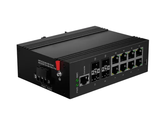 IDSL3LR-04S08G-Z7 | Din-Rail Industrial L3 Lite Managed Switch 8x10/100/1000M RJ45, 4x1000M SFP |