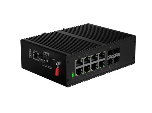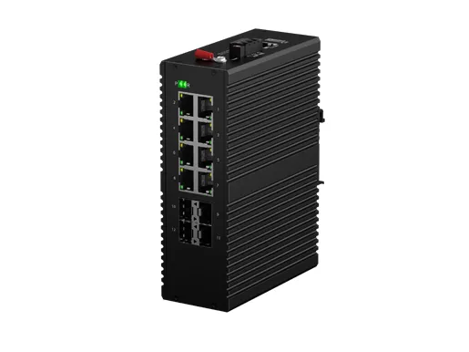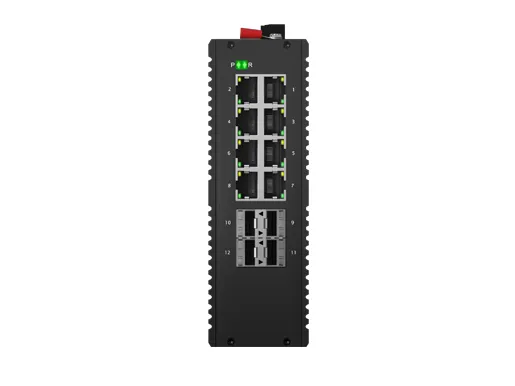 IDSL3R-04S08GP-Z7 is a DIN-rail mounted industrial switch combines Layer 3 routing with PoE+ support (IEEE 802.3at, 30w) for harsh environments. It is equipped with 8x10/100/1000M ports and 4x1G SFP interfaces. Leveraging fanless heat dissipation circuit design, wide operating temperature range -40°C to +75°C, and IP40 high protection level , it delivers outstanding industrial grade performance, high and low temperature tolerance and lightning protection capabilities. It integrates diverse protocols essential for switching and security functions and supports the public domain Ethernet Ring Protection Switching (ERPS) technology, greatly enhancing network - building flexibility while strengthening the reliability and security of industrial networks. This makes it well suited to meet the deployment demands in applications like rail transit, smart cities, intelligent transportation, outdoor surveillance, and other harsh environments.