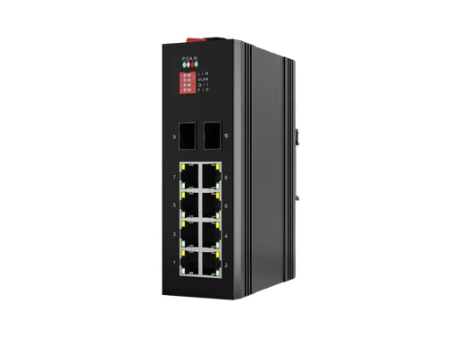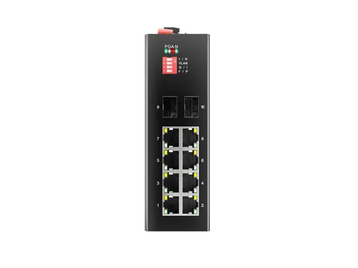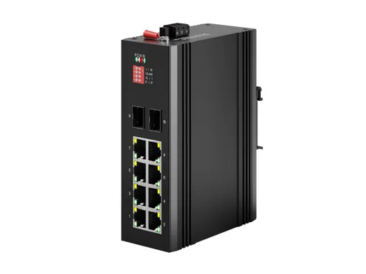 IDSAIM-02S08GP-Z6 is an unmanaged industrial Ethernet fast switch featuring 8×10/100Base-TX PoE ports and 2×Gigabit fiber ports. Designed for harsh industrial environments, it boasts a faceless heat-dissipation circuit design, wide operating temperature range, and high protection level, ensuring exceptional resistance to extreme temperatures and lightning protection. These industrial-grade features significantly enhance network reliability and security, making it an ideal solution for rail transit, Safe City projects, intelligent transportation, and outdoor surveillance deployments.