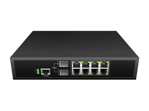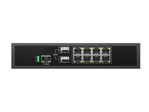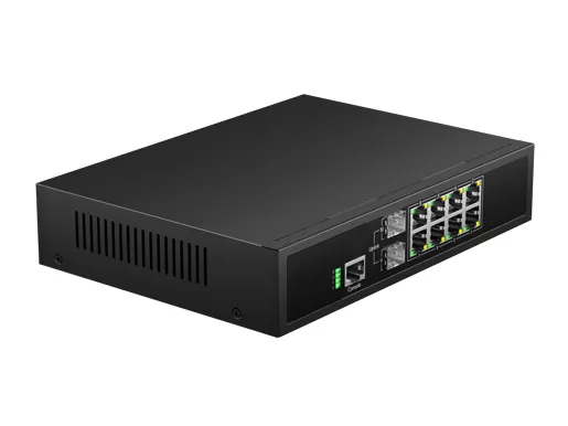 A cost-effective and high-performance solution designed for small to medium-sized networks. This compact switch features 8x 10/100/1000Base-T RJ45 copper ports for flexible Ethernet connectivity and 2x Gigabit SFP uplink ports for fiber or long-distance transmission needs. Each RJ45 port supports auto-rollover and wire-speed forwarding capabilities. The store-and-forward method is used, combined with QoS technology, to ensure that bandwidth is effectively allocated to each port and provides stable and reliable data transmission. With Layer 3 Lite capabilities, it supports basic routing functions, ensuring efficient traffic management and enhanced network control.Ideal for enterprise access layers, branch offices, and smart building deployments, this switch combines reliability with easy management, making it suitable for a wide range of commercial applications.