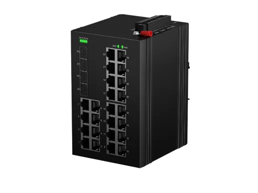 Din-Rail Industrial L2 Managed PoE Switch features 24x10/100/1000M RJ45 PoE+ ports and 4x10G SFP+ uplinks. Ports 1-2 & 23-24 support PoE++ BT 90W for high-power devices, ideal for IP cameras, wireless APs, and high-bandwidth applications. Designed for harsh environments, it offers robust L2 management, PoE power budgeting, and industrial-grade reliability, with fan-less cooling circuit design, wide range working temperature -40°C to +75°C, lightning protection and integrated switching for mission-critical applications in harsh environments. With rich protocols, ERPS has greatly enhanced the flexibility of the network and enhanced the reliability and security of the industrial network. It can also meet the deployment requirements of rail transit, safe city, intelligent transportation, outdoor monitoring and other applications.