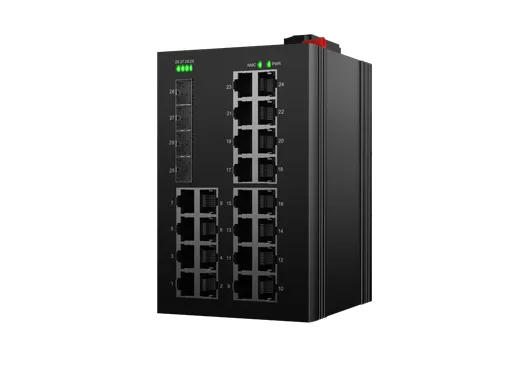 Din-Rail Industrial L2 Managed Switch support 24x 10/100/1000Base-T ports and 4x10G SFP+ ports, with fan-less cooling circuit design, wide range working temperature -40°C to +75°C, lightning protection, integrated switching, delivers robust networking for mission-critical applications in harsh environments. With rich protocols, ERPS has greatly enhanced the flexibility of the network and enhanced the reliability and security of the industrial network. It can also meet the deployment requirements of rail transit, safe city, intelligent transportation, outdoor monitoring and other applications.